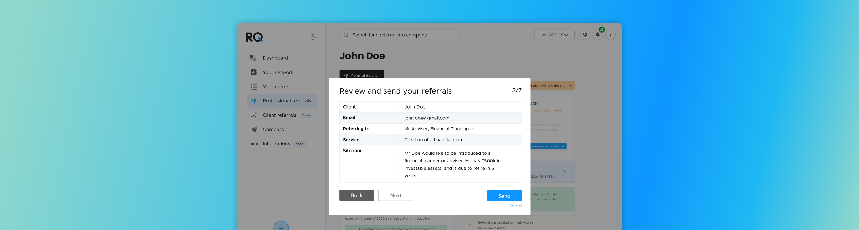 Yet all firms need to empower teams to serve clients seamlessly, making introductions to trusted advisors without unnecessary friction. RQ's approval workflows give firms that extra layer of protection - without turning referrals into a bottleneck.